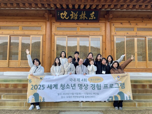 대한불교조계종 월정사 산하 사단법인 문수청소년회(이사장 해공스님, 상임이사 월엄스님)가 주관하고 문화체육관광부가 후원한 ‘2025 세계청소년 명상경험 프로그램 국내캠프 제4차’가 11월 11일부터 12일까지 1박 2일간 오대산 자연 명상마을 옴뷔에서 진행됐습니다.