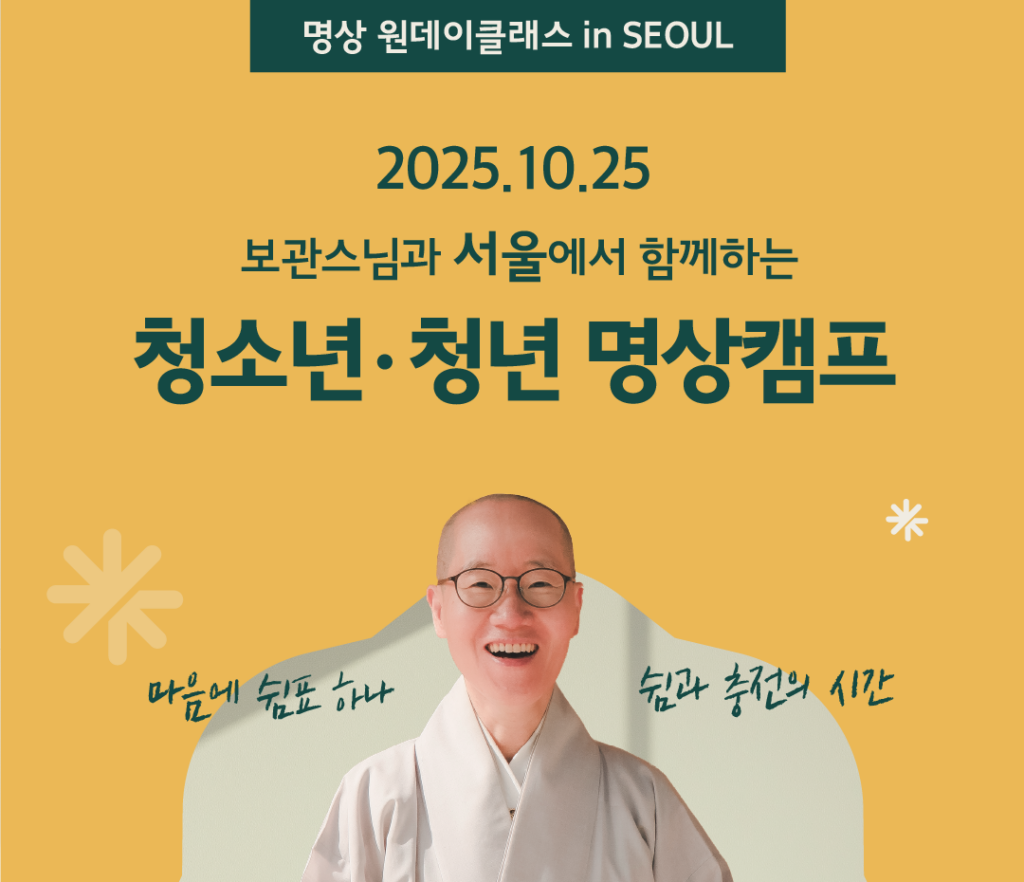 안녕하세요, 사단법인 문수청소년회입니다. 청소년·청년을 위한10월 25일(토) 서울 원데이 명상 클래스 🌿보관 스님과 함께 명상을 경험하며마음을 쉬어가는 시간을 만나보세요. 🌿 행사 […]